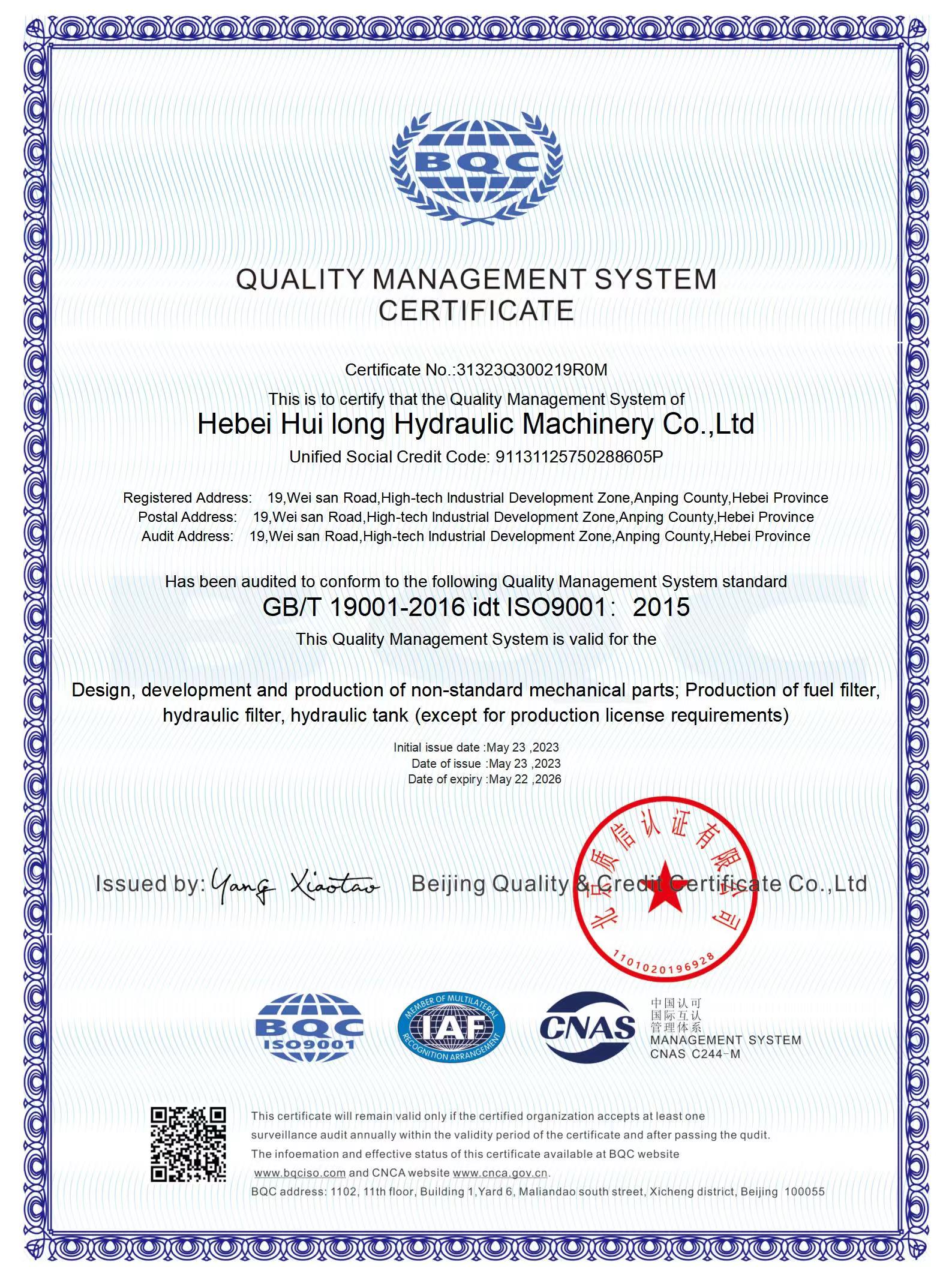 河北惠隆液压机械有限公司主要生产回油过滤器,吸油过滤器,液压过滤器,空气过滤器等过滤产品我们一直致力于满足市场的需求,为客户的机械清洁运行提供优良的产品。本公司设备精良,工艺精湛,检验检测设备完善。产品全面按照ISO9001:2015质量管理体系生产,对采料,生产, 销售实施全程质量控制,使产品质量各项性能指标均优于国家标准企业每年均投入大量的资金,引进精湛的流水线和改进各种生产加工设备。